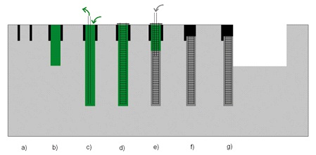 b) głębienie szczeliny pod osłoną zawiesiny bentonitowej