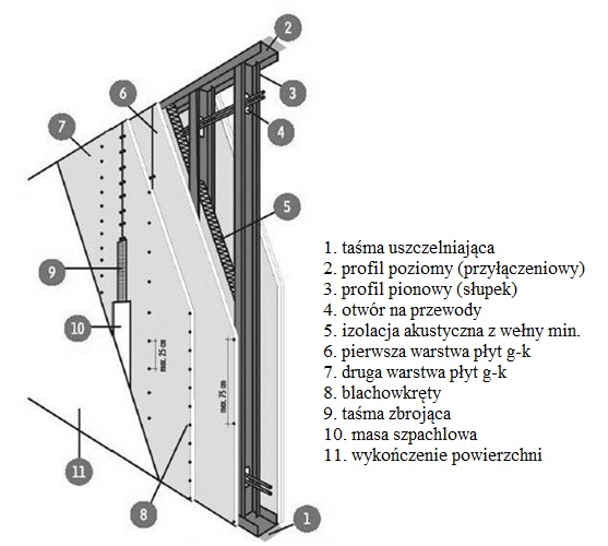 Przy montażu ścian działowych z płyt gipsowo-kartonowych należy pamiętać, że izolacyjność akustyczna w dużej mierze zależy również od umieszczonego w ścianie wypełnienia.