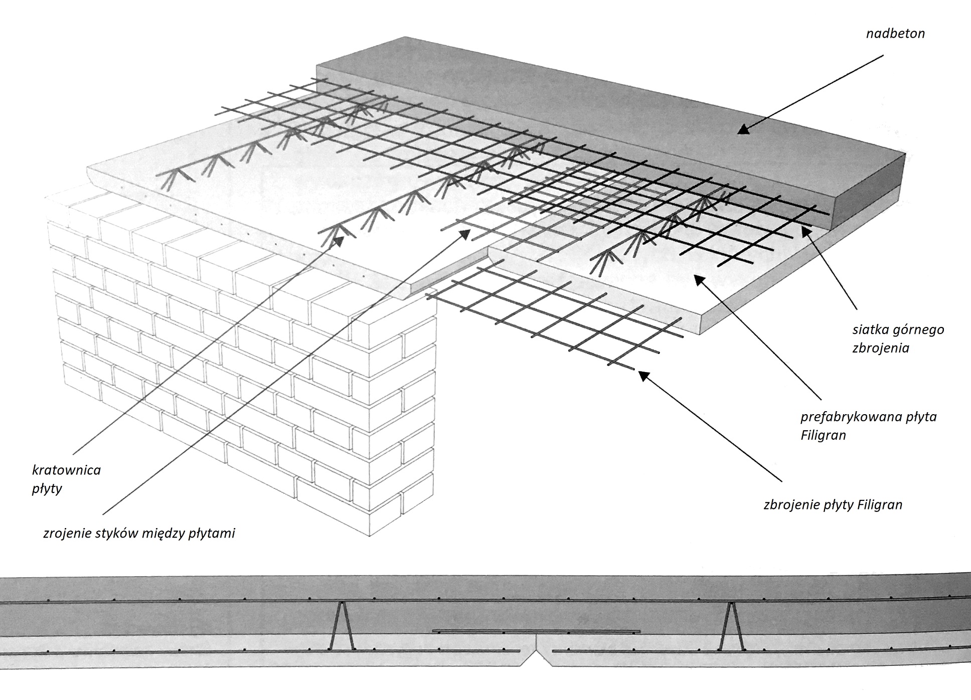 Żebra mogą być jednoprzęsłowe lub wieloprzęsłowe. Podpory pośrednie żeber wieloprzęsłowych stanowić mogą ściany lub podciągi oparte na slupach, ze względu na ciągłość płyt, pręty zbrojenia są umieszczane w przęsłach płyty przeważnie na dole oraz na górze, nad żebrami. Jeśli w przęśle płyty górne włókna są rozciągane, to wówczas pręty zbrojenia układa się w strefie rozciąganej, tj. na górze płyty. W stropach płytowo-żebrowych łatwo wykonać można otwory technologiczne o różnych wymiarach, jeśli takie są potrzebne ze względów użytkowych. Szersze zastosowanie stropy te mają w budownictwie szkieletowym.