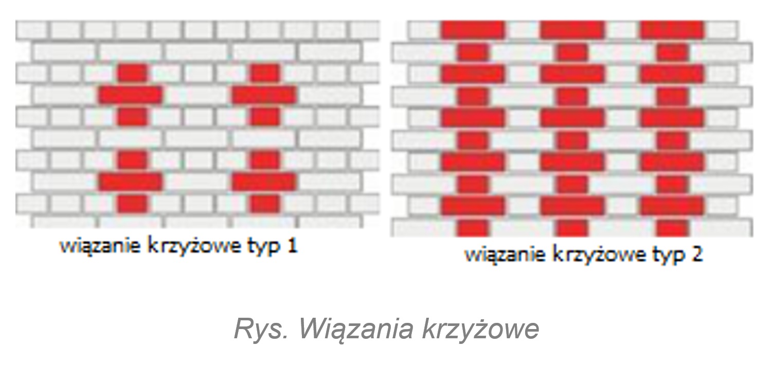 W kolejnych warstwach elementy (cegły, pustaki) należy układać z wzajemnym przesunięciem, wynoszącym co najmniej 8-10 cm.