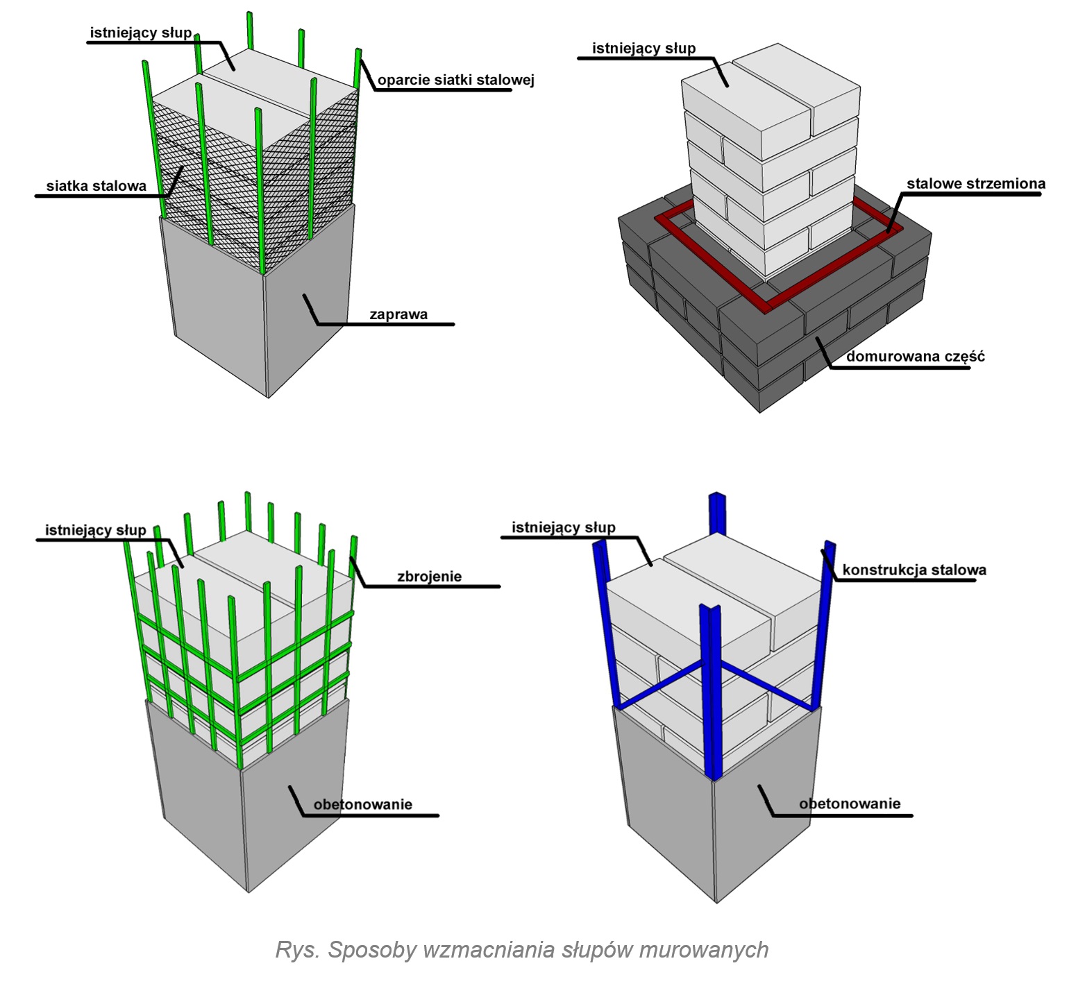 Jakie wyróżniamy sposoby wzmacniania słupów murowanych?