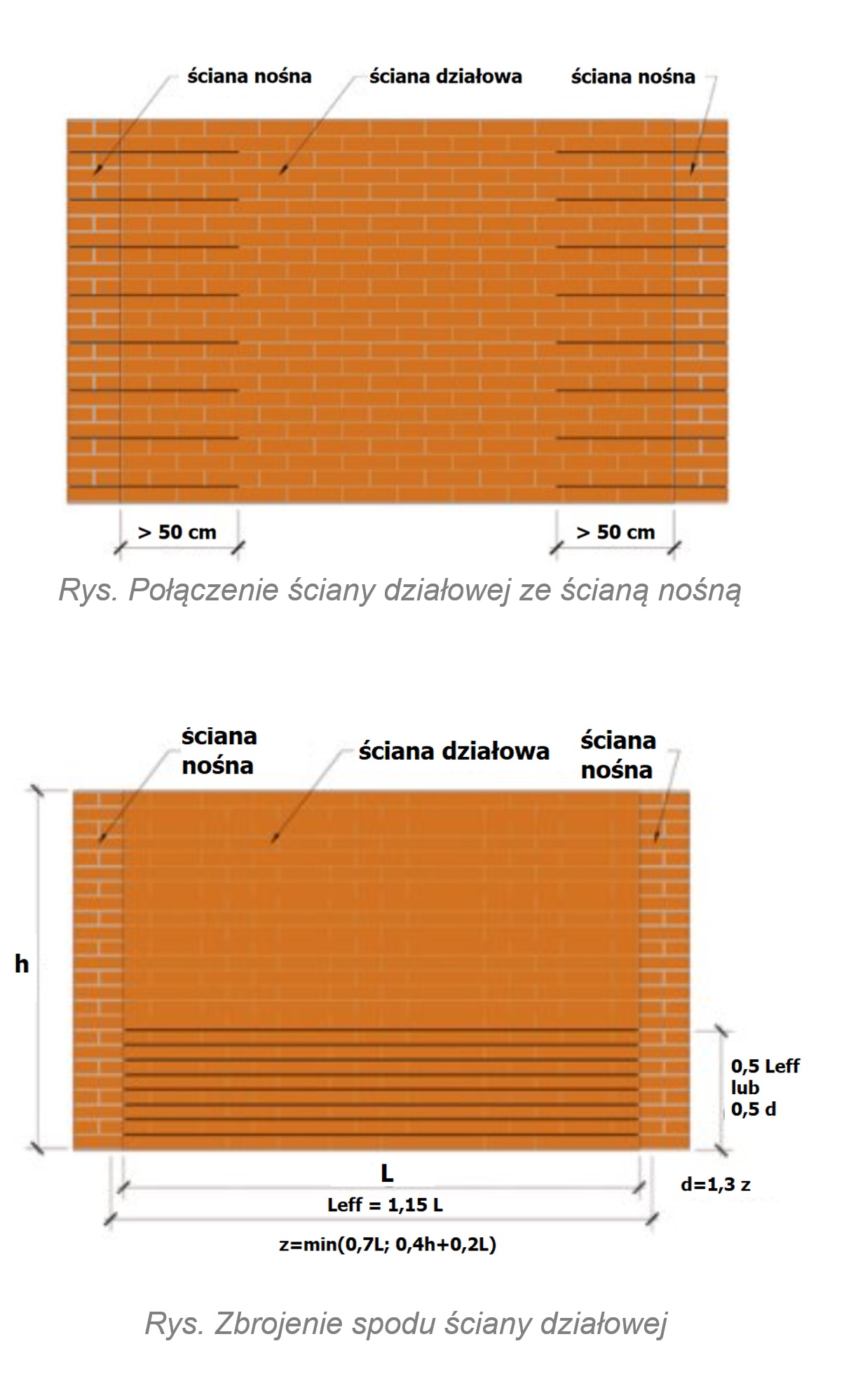 Zbrojenie takie przyjmuje się zazwyczaj konstrukcyjnie i umieszcza w dolnych spoinach wspornych na wysokości równej minimum połowy rozpiętości efektywnej ściany 0,5leff lub połowy wysokości użytecznej przekroju 0,5d - decyduje wartość mniejsza.