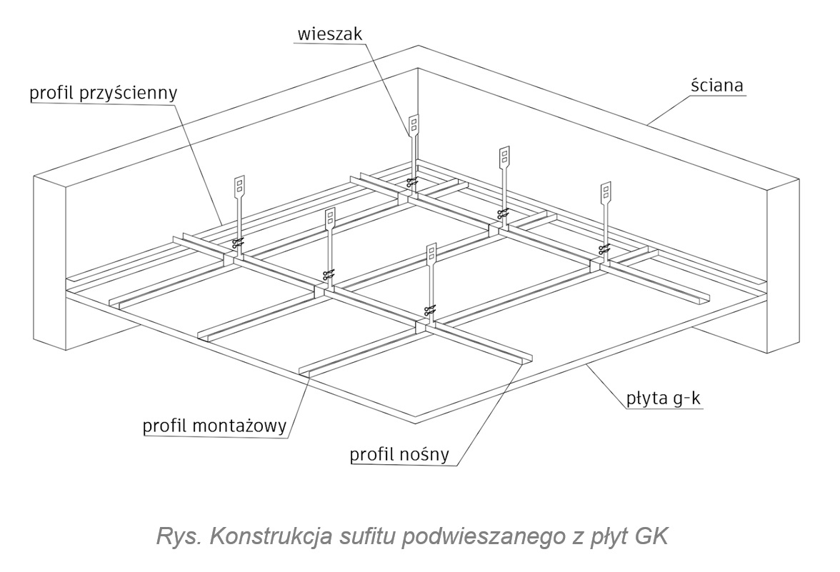 Przykładowa technologia montażu sufitu podwieszanego: