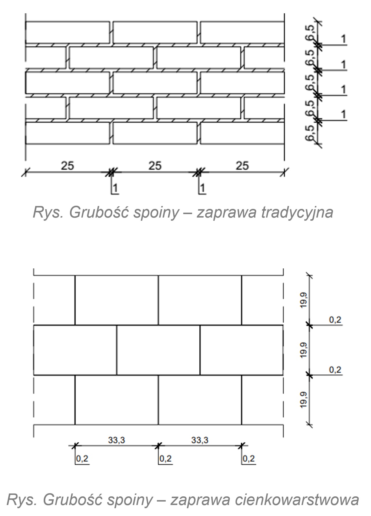Dopuszczalne wymiary spoin w konstrukcjach murowych.