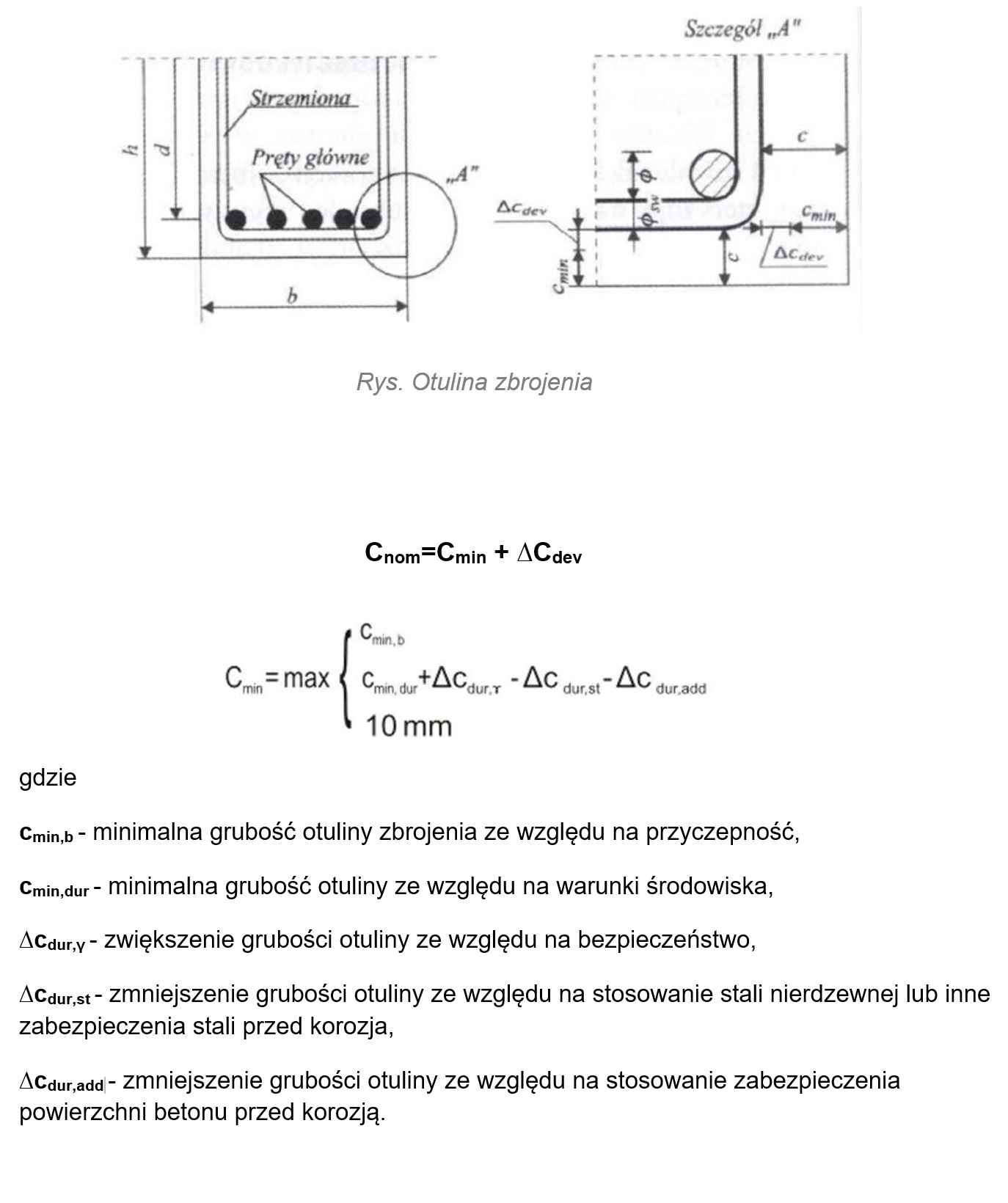 Z powyższego wynika, że grubość otuliny każdorazowo musi być ustalana z przyszłym użytkownikiem. Według EC2 grubość otuliny powinna być dobrana w sposób zapewniający: