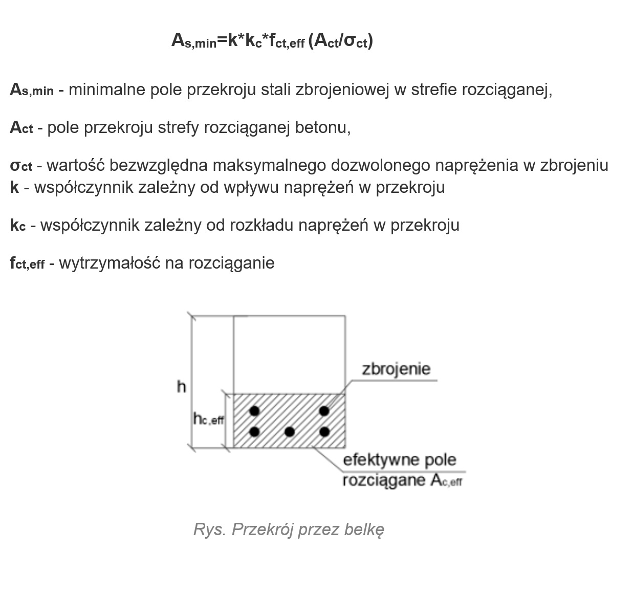 Wzór na obliczenie minimalnego pola przekroju zbrojenia