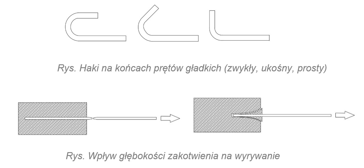 Przyczepność przy żebrowanych prętów ze stali twardej jest nawet 1,5 razy lepsza niż przy prętach gładkich ze stali miękkiej. Aby poprawić kotwienie prętów gładkich na ich końcu wykonuje się haki (w prętach żebrowych ze względu na twardość stali nie da się wykonać haków)