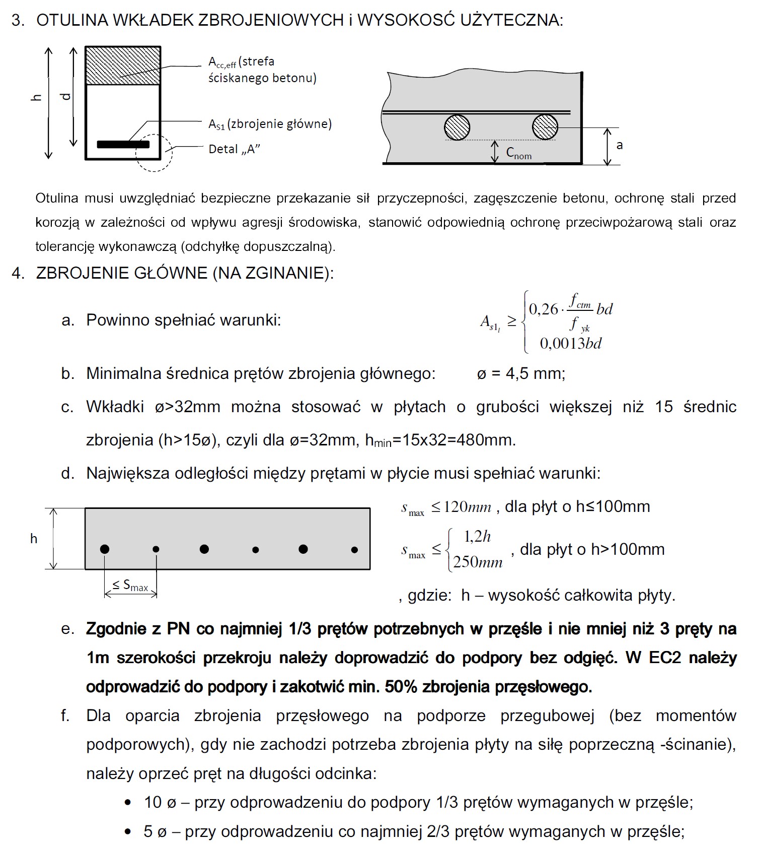 w każdym przekroju równoległym do obu prostopadłych do siebie krawędzi, pręty zbrojenia w przęśle powinny mieć stały rozstaw w obu kierunkach. Dotyczy to również zbrojenia podporowego płyt zamocowanych i ciągłych.