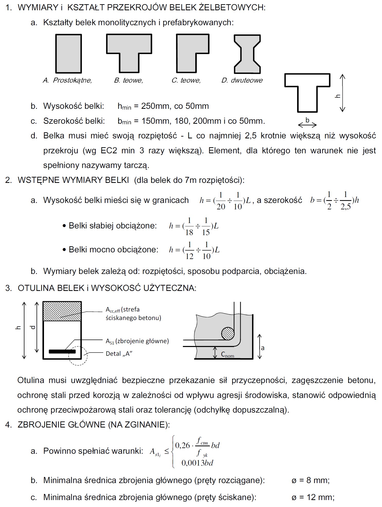 Grubość otuliny w obliczeniach belek monolitycznych zwiększa się o warunek dopuszczalnej odchyłki delta c = 5 do 10mm, a belek prefabrykowanych delta c = 0 do 5 mm.