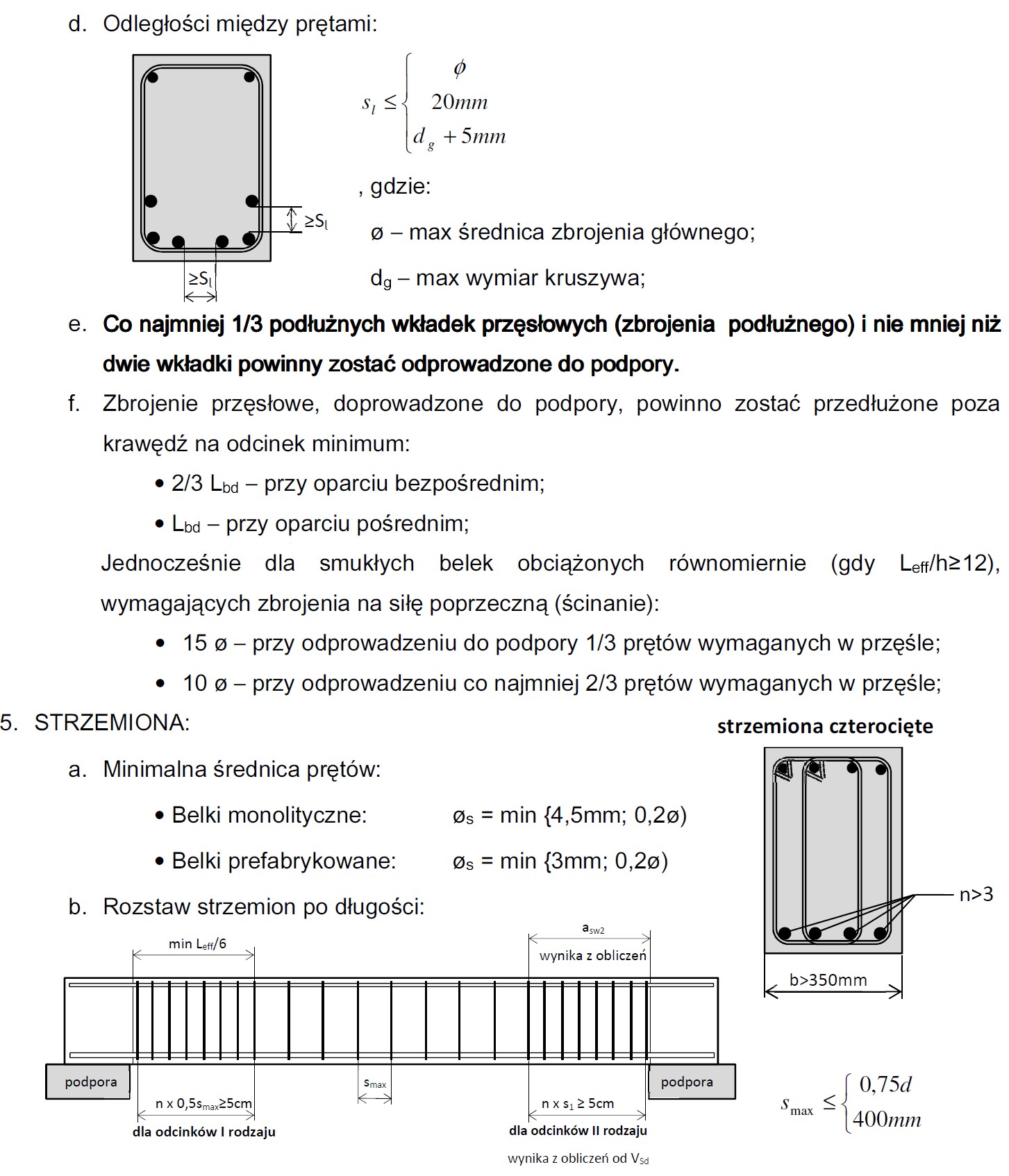 Maksymalny rozstaw prętów poza przekrojami krytycznymi powinien być nie większy niż 300 mm.