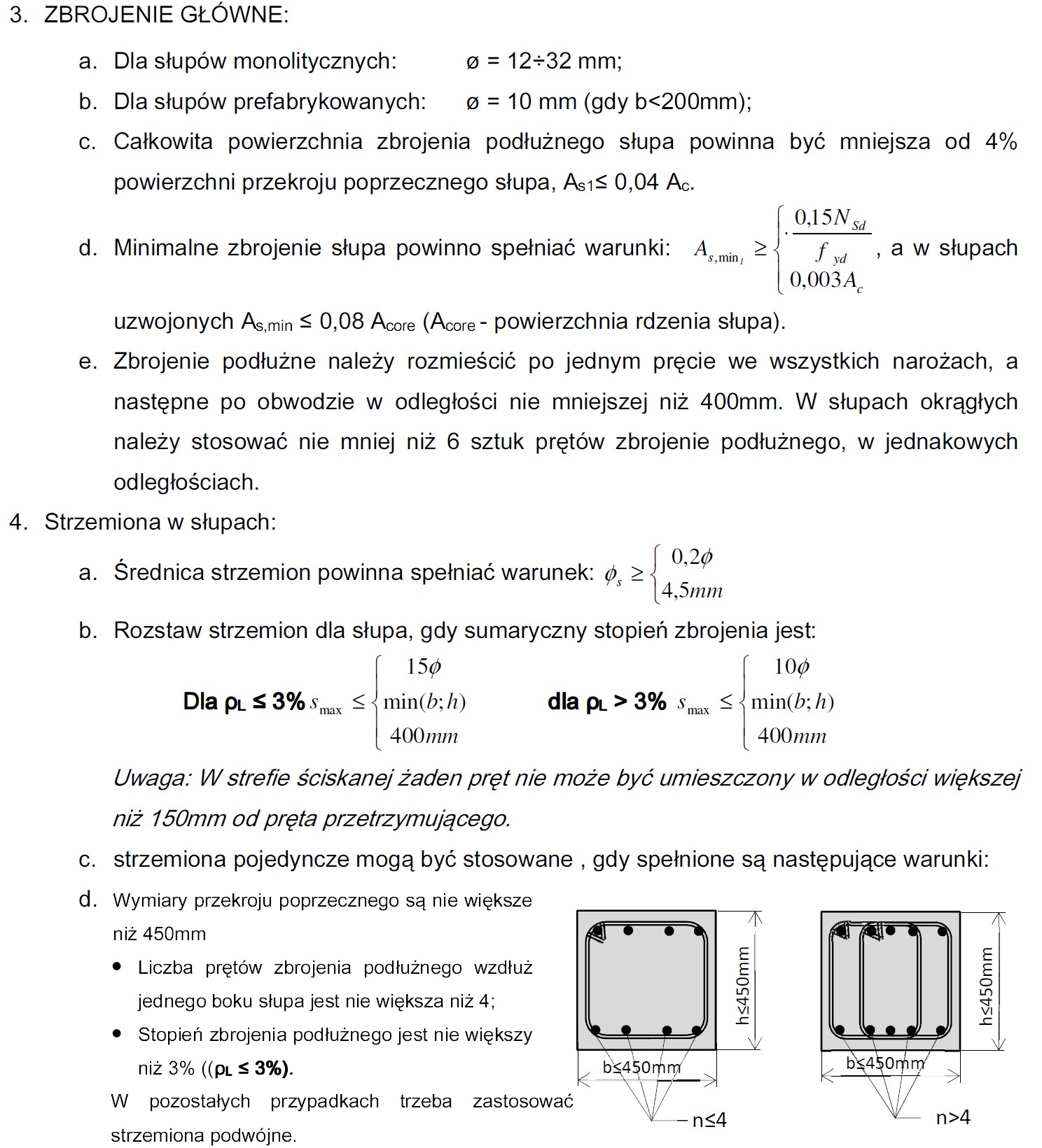 W elementach ściskanych rozstaw osi prętów nic powinien być większy niż 400 mm.