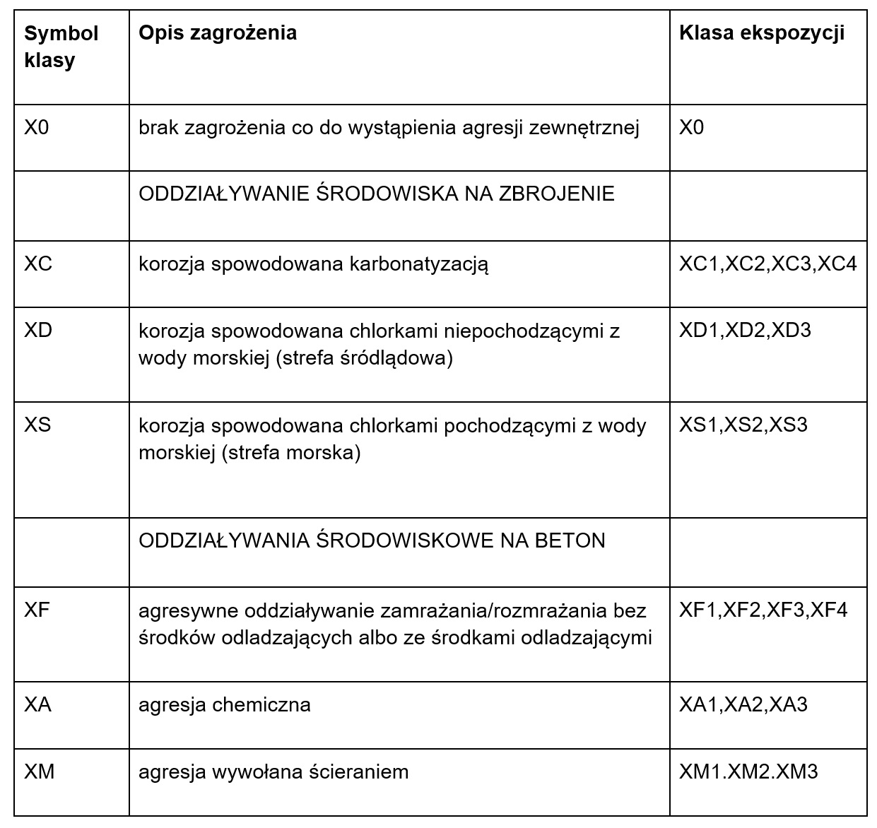 Minimalna grubość otuliny zbrojenia w konstrukcji w dużej mierze zależy od klasy ekspozycji środowiska.