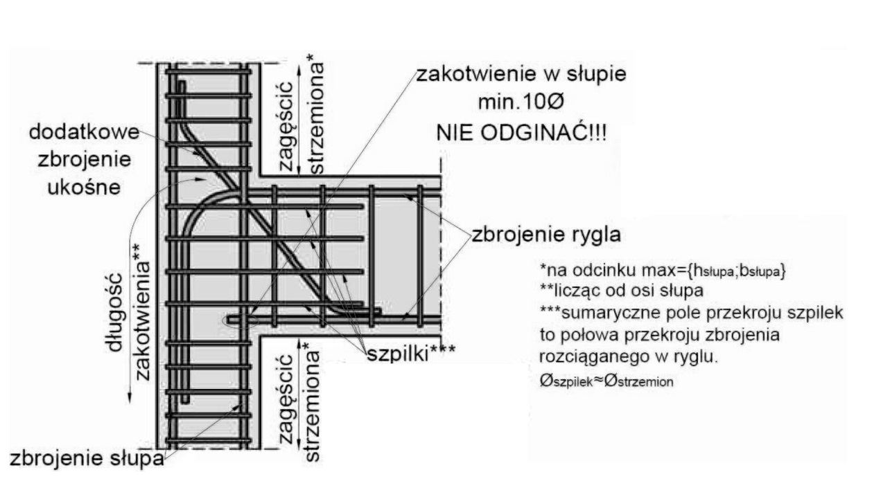 Poniżej przedstawiono rysunek zbrojenia połączenia słupa z ryglem: