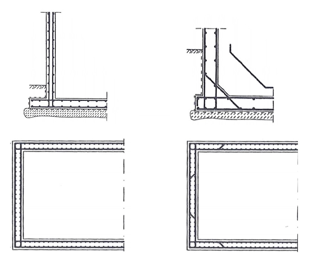 Narysować szczegół zbrojenia ścian zbiornika w połączeniu z płyta denną