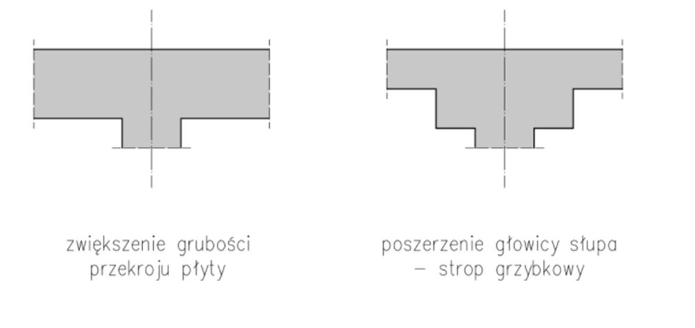 Zapobiec takiemu zniszczeniu można zwiększając grubość płyty stropowej lub wykonując lokalne pogrubienia w postaci stropów grzybkowych charakteryzujących się poszerzoną głowicą słupa, dzięki której zwiększona zostaje powierzchnia podparcia stropów. Często stosowane lokalne pogrubienia stropów w strefach przysłupowych nie są rozwiązaniem ekonomicznym i optymalnym, ograniczają możliwości wykorzystania przestrzeni wewnętrznych, komplikują prace zbrojarskie i szalunkowe, co w efekcie zwiększa koszty budowy. Alternatywnym rozwiązaniem jest zastosowanie odpowiedniego zbrojenia na ścinanie w charakterze zbrojenia na przebicie.