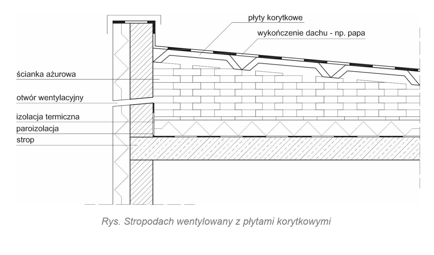 Narysować i omówić stropodach wentylowany przy użyciu płyt korytkowych.