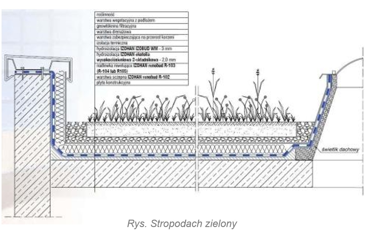 W przypadku obu systemów ważne jest zastosowanie specjalnej wkładki przeciwkorzennej zabezpieczającej warstwę hydroizolacyjną przed przerastaniem korzeni.