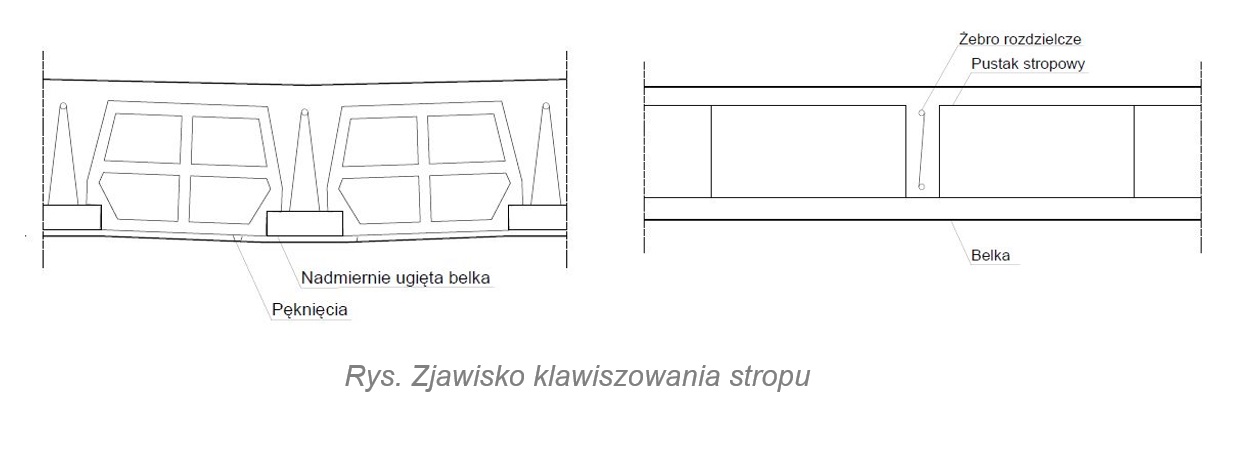 Skutkiem klawiszowania stropu są pęknięcia widoczne na suficie, pojawiające się w miejscach usytuowania żelbetowych belek.