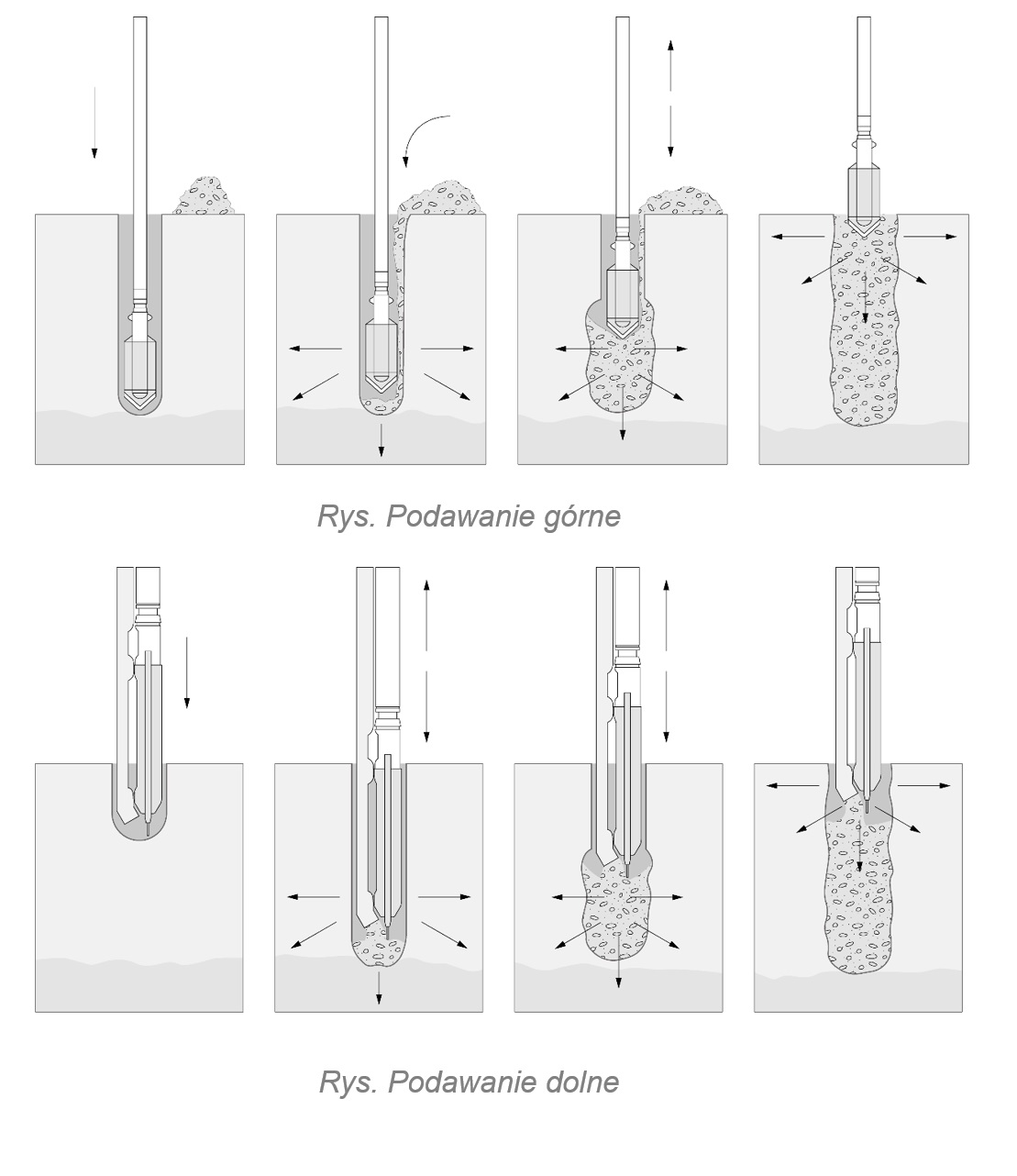 Wibrowanie - polega na wprawieniu w drgania o wysokiej częstotliwości cząstek gruntu.