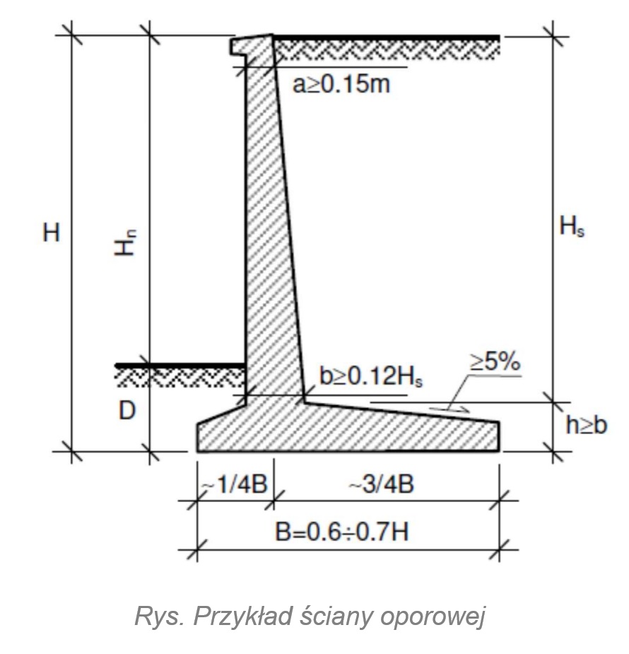 Natomiast w ścianach żelbetowych, z uwagi na stosowany minimalny przekrój zbrojenia, rozstaw stałych przerw dylatacyjnych można zwiększyć do 20 m. Podane odległości dotyczą odcinków ścian oporowych o końcach mających swobodę przemieszczeń poziomych. Istnieją jednak obiekty z utrudnionymi przemieszczeniami, np. w ścianach załamanych w planie. Wówczas respektuje się zasadę ograniczania odległości od załamania do szczeliny. Wartością dopuszczalną jest wtedy 10 m. Spełnienie tych warunków pozwala na optymalne kontrolowanie procesu termiczno-skurczowego. Ze względu na trwałość samej konstrukcji istotne jest nie samo zarysowanie, ale nieprzekraczanie przez nie granicznej szerokości 0,1
