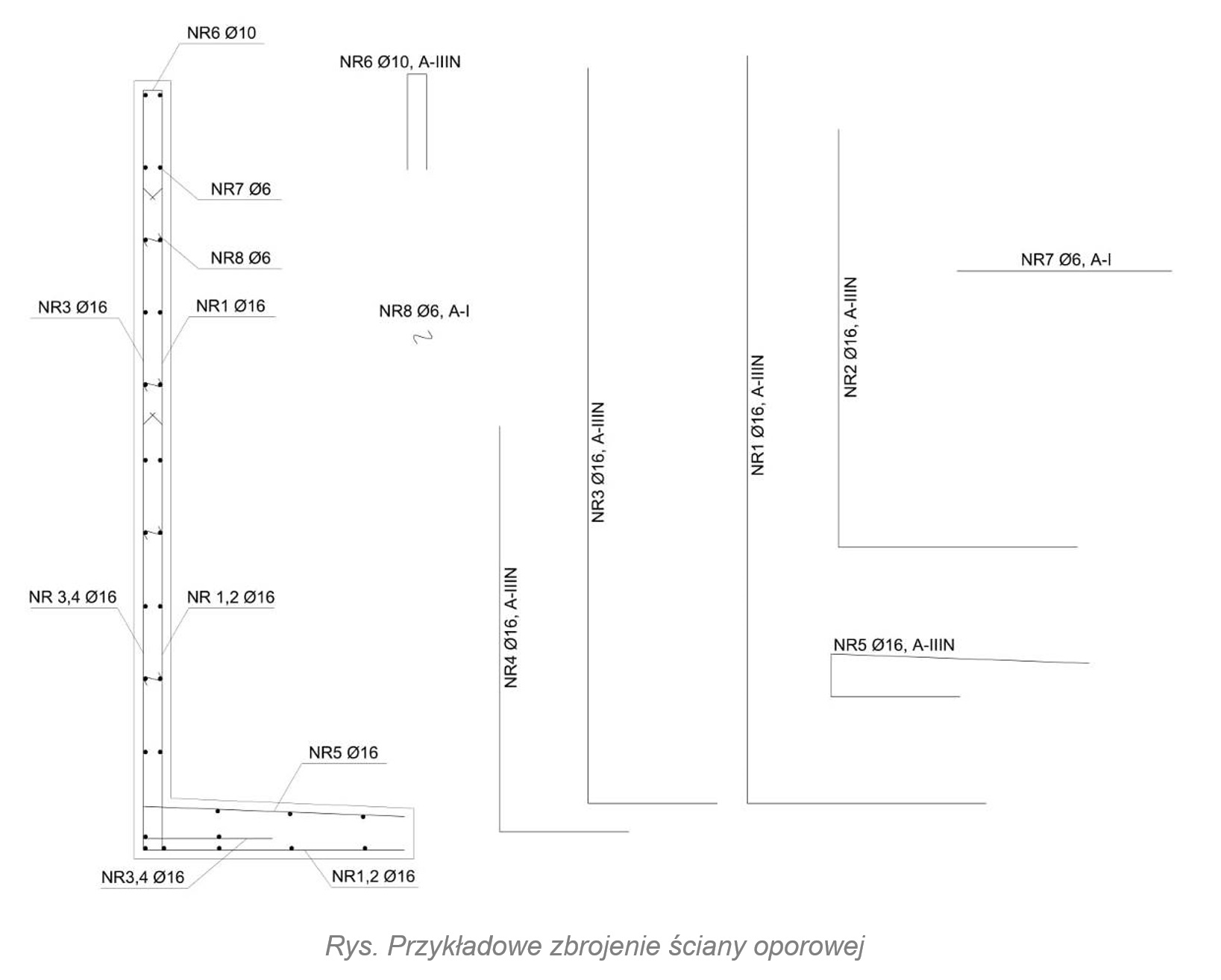 Przy wznoszeniu muru oporowego z betonu o wysokość powyżej 0,5 m, konieczne będzie nie tylko wykonanie zbrojenia konstrukcji, ale również posadowienia jej na fundamencie. Zbrojenie obu tych elementów wykonuje się jak każde żelbetowe konstrukcje. W związku z tym, że nacisk gruntu przebiega w kierunku poziomym, ścianę zbroi się pionowo, przeciwdziałając siłom parcia. Zbrojenie poziome fundamentów powinno być ułożone równo, w takich samych odstępach. Rozkład zbrojenia, gęstość ułożenia, jak i rodzaj prętów układa się na podstawie wyliczeń architekta projektującego daną konstrukcję.