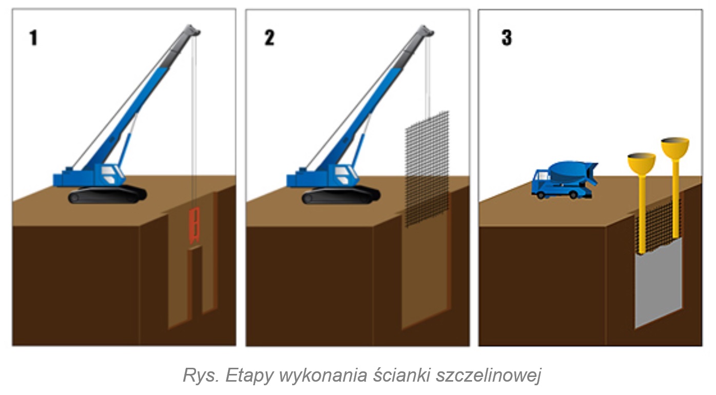 Ściany szczelinowe mogą być wykonywane w bezpośrednim sąsiedztwie istniejącej zabudowy - min. odległość ok. 30 cm.