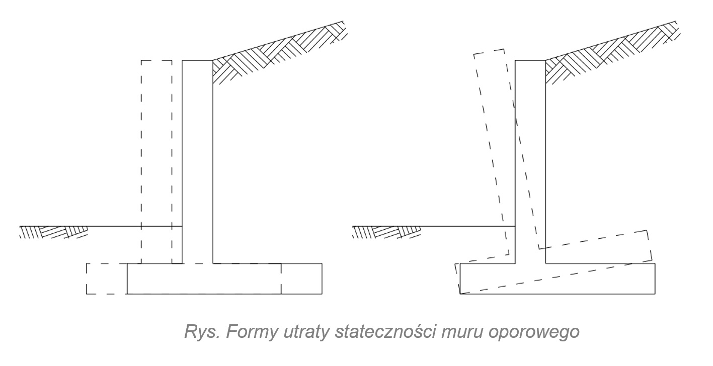 Wpływ na utratę stateczności muru oporowego ma wartość parcia gruntu oraz kierunki sił wypadkowych parcia gruntu.