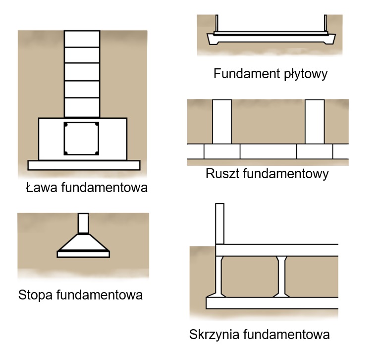 Fundamenty dzielimy z uwagi na sposób posadowienia w następujący sposób: