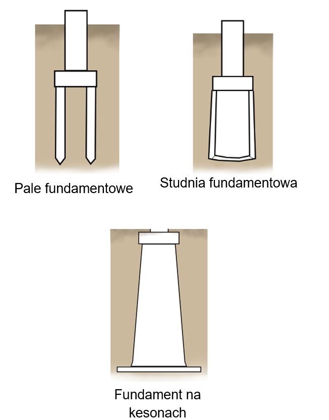 Fundamenty pośrednie wykonuje się w postaci pali, studni fundamentowych lub fundamentów na kesonach.