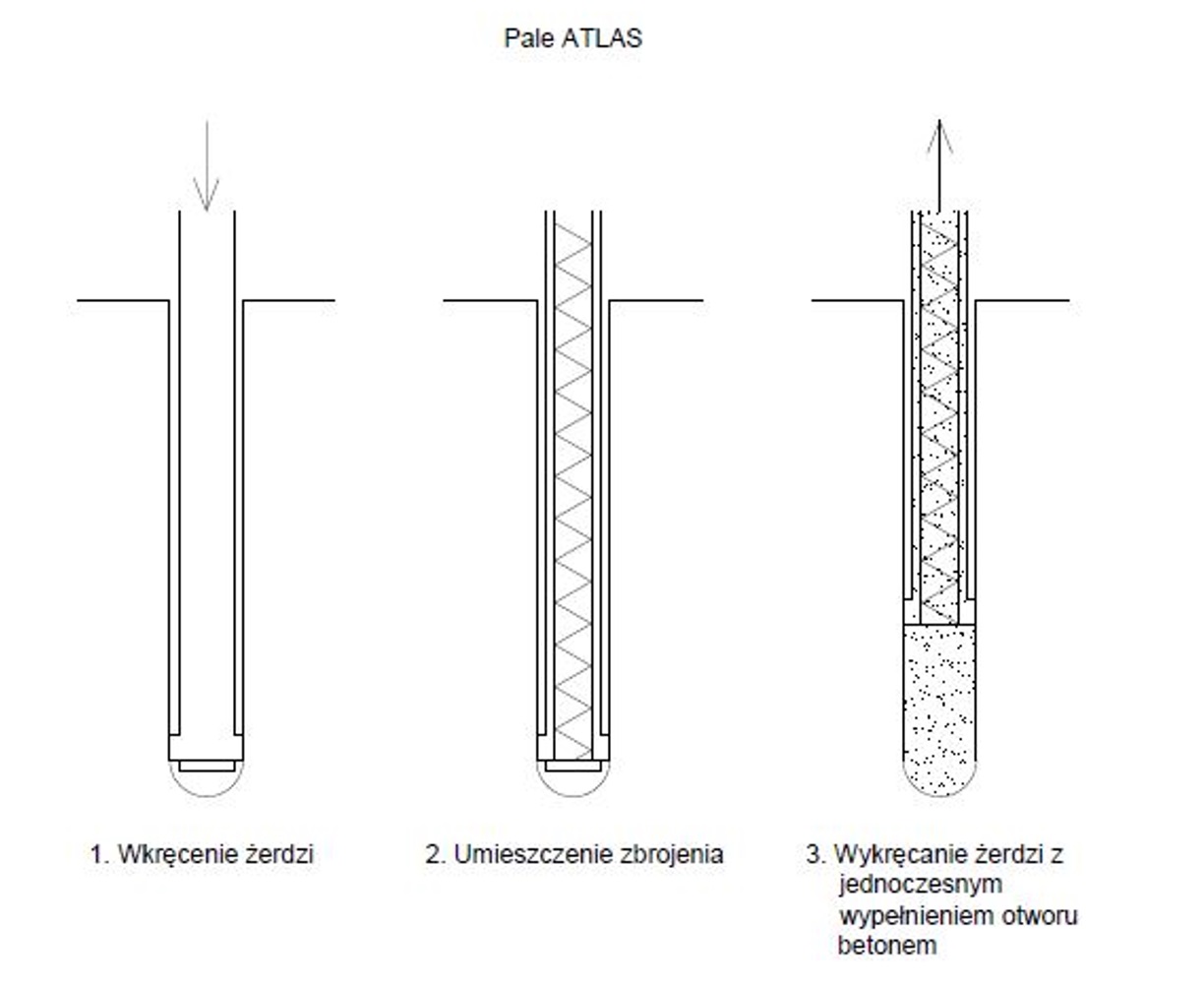Pale Atlas są odmianą pali wkręcanych. Nie wymagają wydobywanie gruntu. Grunt jest rozpychany na boki podczas wkręcania ostrza.